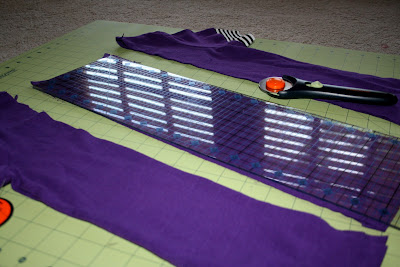 For the headband I cut a 4 inch wide strip from the purple body of the shirt ...